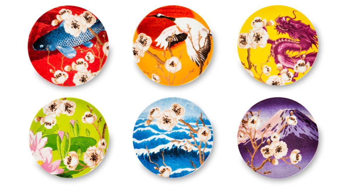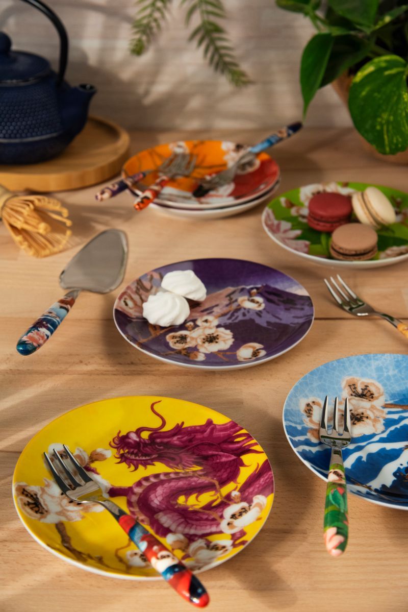 I piatti per aperitivo Fuji, in stile orientale-giappo, sono perfetti per servire dolce e salato ai tuoi ospiti. Il set comprende 6 piattini da 15 cm di diametro coordinabili con gli altri articoli della stessa collezione. Ogni piatto ha una personalizzazione diversa e sono contenuti in una scatola litografata.