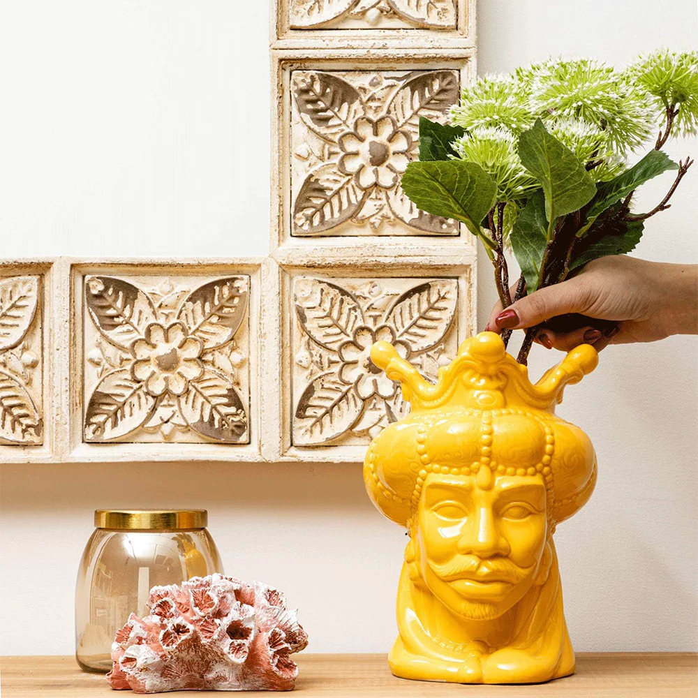 VASO RE TESTA DI MORO DIPINTA A MANO GIALLA
